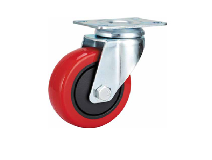 Chất liệu PU: chất liệu này có đặc tính không chịu được nhiệt độ cao nhưng có khả năng kháng lại hóa chất dạng nhẹ và dầu mỡ. Loại bánh xe này thích ứng tốt nhất trên bề mặt phẳng, không gồ ghề, xóc nảy. Bánh xe PU được sử dụng chủ yếu trên nền nhà nhằm bảo vệ nền, sàn không bị xước nhưng không tốt bằng bánh xe cao su vì nó không có tính đàn hồi và giảm xóc tốt bằng cao su.