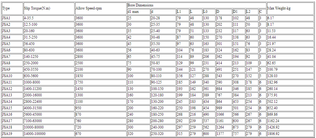Khớp nối lưới loại JSA thích hợp sử dụng cho máy nghiền than, máy nghiền đá, tay quay pittong, khai thác mỏ, máy móc hạng nặng, bộ giảm tốc, được ứng dụng chủ yếu trong lĩnh vực cơ khí quốc tế hiện nay.