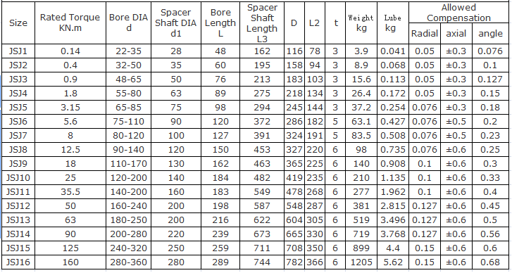 Khớp nối JSJ có hình vòng cung và kích thước của bề mặt tiếp xúc thay đổi theo mômen truyền, vì vậy nó có thể chịu được những thay đổi lớn về tải trọng và quá tải ngắn hạn đã được đo.