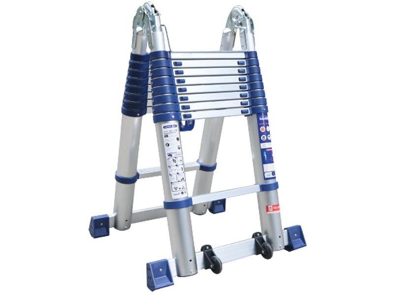 - Loại thang này có thể điều chỉnh thành hai dạng là chữ A và chữ I. Dạng chữ A thích hợp sử dụng ở vị trí không có điểm tựa chắc chắn, nên dáng chữ A có thể đứng vững. Còn nếu muốn leo ở tầm cao hơn có có điểm tựa an toàn thì dáng chữ I là rất hiệu quả.