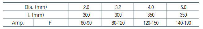 Đường kính que hàn: 2.6/ 3.2/ 4.0/ 5.0mm