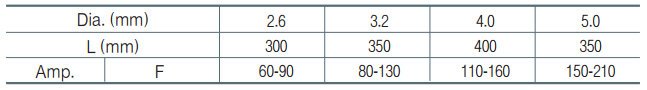 Đường kính que hàn: 2.6/ 3.2/ 4.0/ 5.0mm