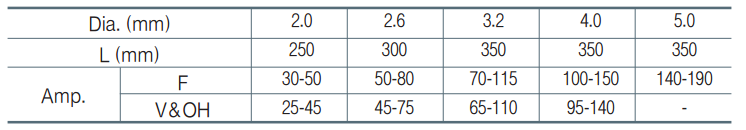 Đường kính que hàn: 2.0/ 2.6/ 3.2/ 4.0/ 5.0mm