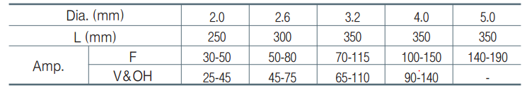 Đường kính que hàn: 2.0/ 2.6/ 3.2/ 4.0/ 5.0mm