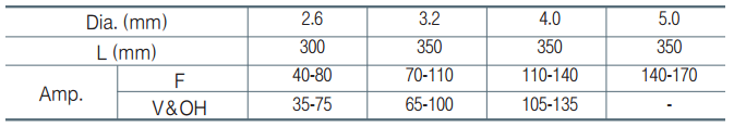 Đường kính que hàn: 2.6/ 3.2/ 4.0/ 5.0mm