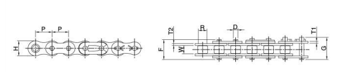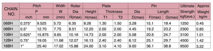 Tương thích với nhông xích tiêu chuẩn ISO 606, độ bền kéo cao hơn so với cùng kích thước của dây chuyền tiêu chuẩn.