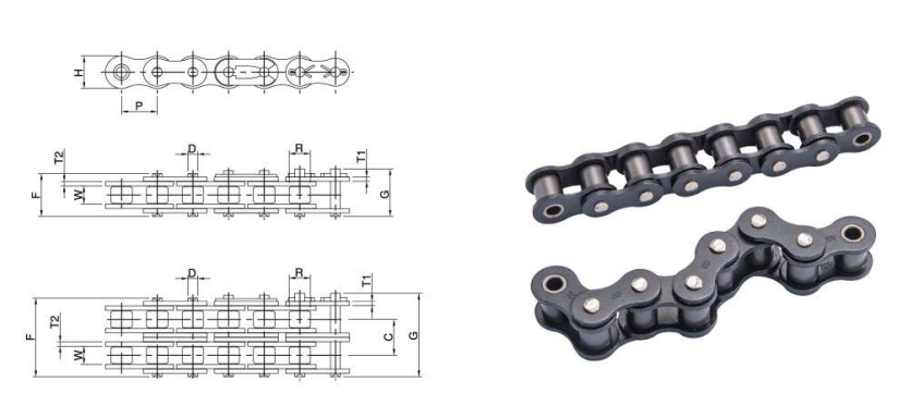Ngoài ra, xích con lăn tự bôi trơn sử dụng chốt mạ niken và con lăn rắn để tăng tuổi thọ mài mòn.