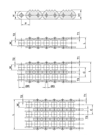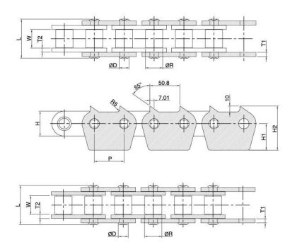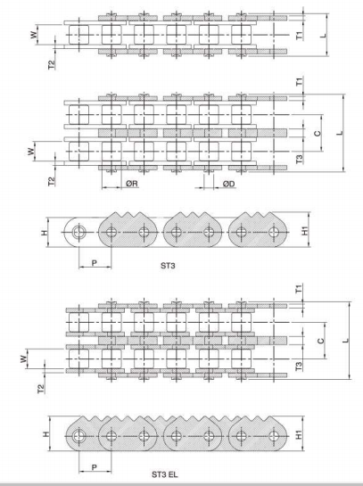 Các dây xích đầu nhọn được chế tạo bằng các tấm có đầu răng chính xác để có độ bám tuyệt vời.