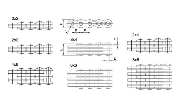 Xích lá loại AL gồm các tấm và chân xích con lăn tiêu chuẩn ANSI cho cac ứng dung tải nhẹ.