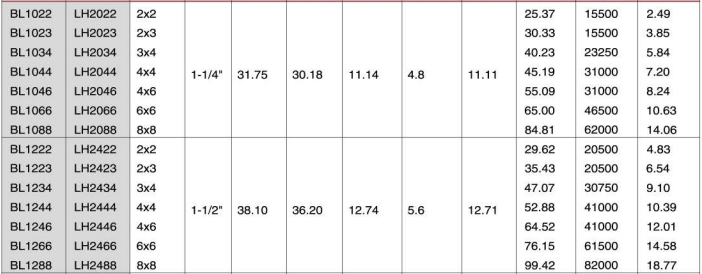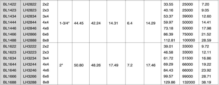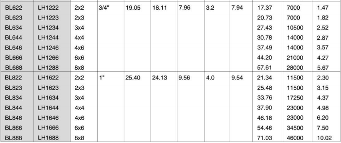 Xích lá BL được sản xuất theo tiêu chuẩn ASME và ISO, cấu tạo từ các tấm dày hơn và các chốt lớn hơn so với xích lá AL