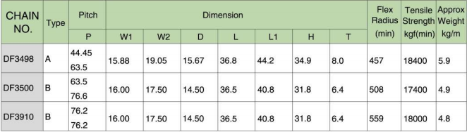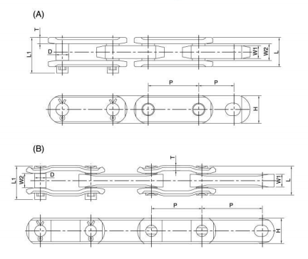 Các tấm bên ngoài được thiết kế theo cấu hình uốn đặc biệt, cung cấp cho chuỗi chuyển động uốn bên tốt và bảo vệ vị trí đinh tán của các chốt khỏi va chạm và mài mòn.