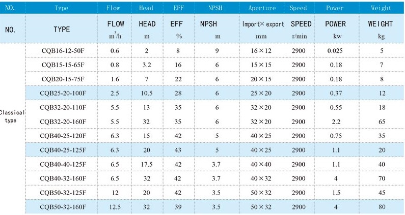 Bơm từ tính hóa chất nhựa Flo CQB-F có thể bơm được các dung dịch có nhiệt độ từ -20 đến 150°C ở bất kỳ nồng độ nào như các loại axit, kiềm, muối, dung môi hữu cơ...