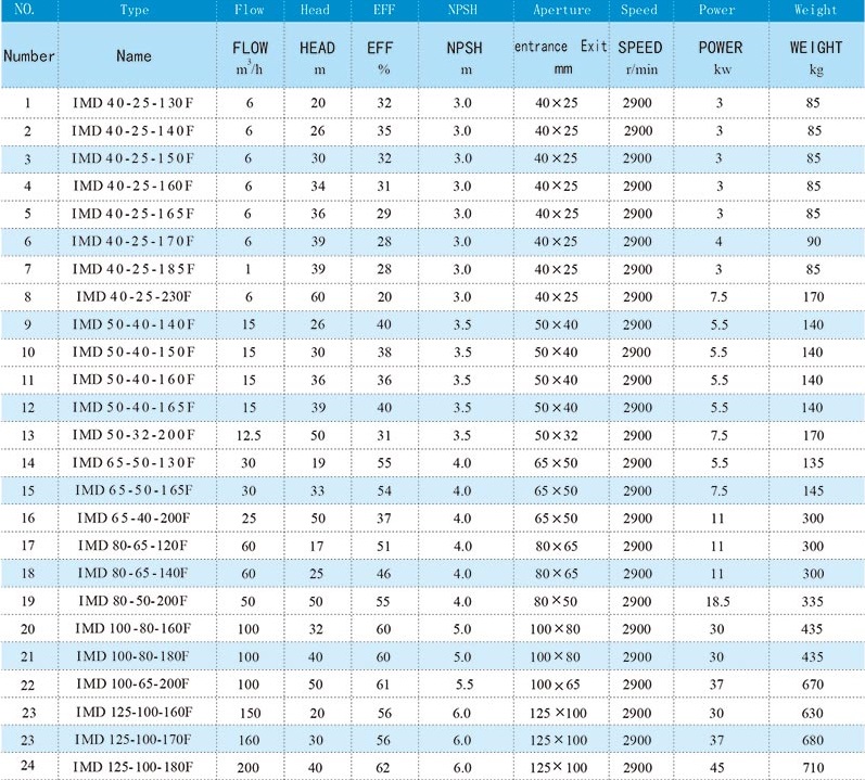 Bơm từ tính hóa chất nhựa Flo IMD-F có thể bơm được các dung dịch có nhiệt độ từ -20 đến 180°C ở bất kỳ nồng độ nào như các loại axit, kiềm, muối, dung môi hữu cơ...