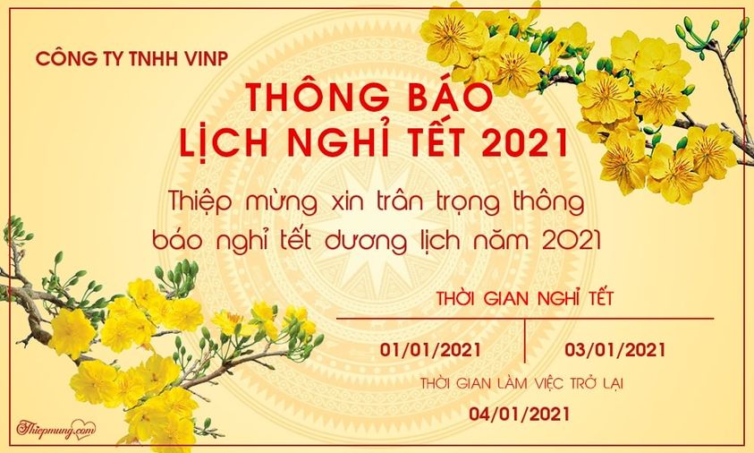 CÔNG TY TNHH VINP THÔNG BÁO LỊCH NGHỈ TẾT DƯƠNG LỊCH 2021