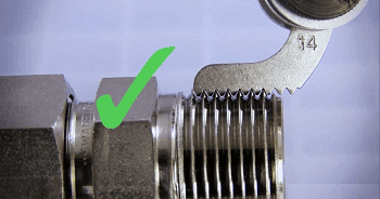 Sử dụng một thước đo ren để xác định bước ren. Bạn nên chú ý là có nhiều bước ren tương đối gần nhau nên cẩn thận kiểm tra bằng cách áp thước đo ren vào ít nhất 4 đỉnh răng liên tiếp sau đó xoay theo đường ren ít nhất một vòng để kiểm tra sự ăn khớp. Hãy so sánh các giá trị đo được ở bước 1 và 2 để tìm ra loại ren tương ứng.