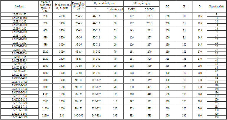 Khớp nối linh hoạt loại LMZ-I, LMZ-II là loại khớp nối hàm linh hoạt được sử dụng chủ yếu trong công nghiệp.