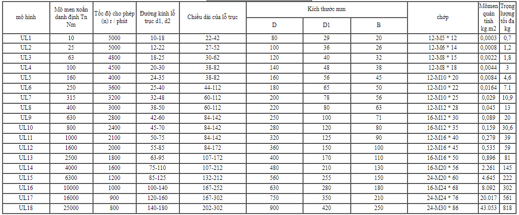 Khớp nối lốp loại UL là khớp nối đàn hồi với hiệu suất cao vì phần tử đàn hồi giống như toàn bộ thân lốp nên khớp nối lốp có khả năng giảm chấn tốt và hiệu suất bù trục.