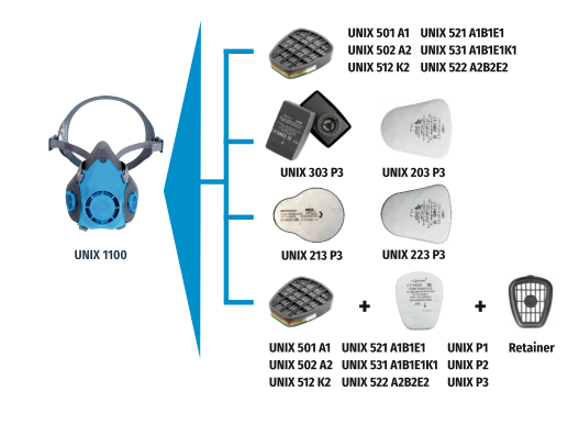 Mặt nạ chống độc unix 1100 có thể kết hợp các loại phin lọc khác nhau như phin lọc độc unix 521, unix 203, unix 213… giúp tối ưu khả năng chống độc: