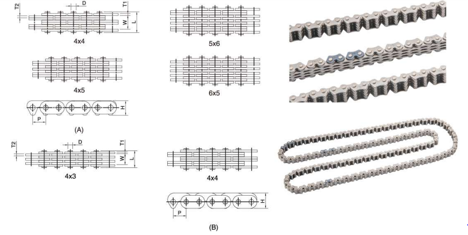 Xích chạy êm được sử dụng cho động cơ ô tô với ít tiếng ồn và độ rung đồng thời cho hiệu suất làm việc cao.