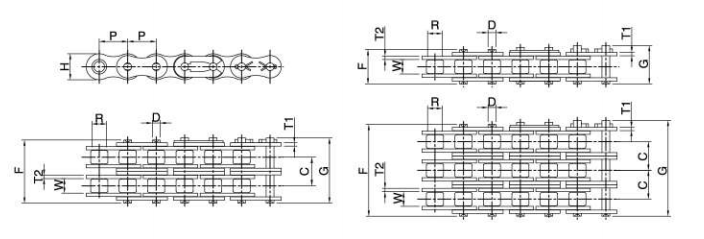 Xích con lăn BS được sản xuất theo tiêu chuẩn ISO của Anh có đầy đủ các dạng sợi đơn, sợi kép và sợi ba.