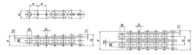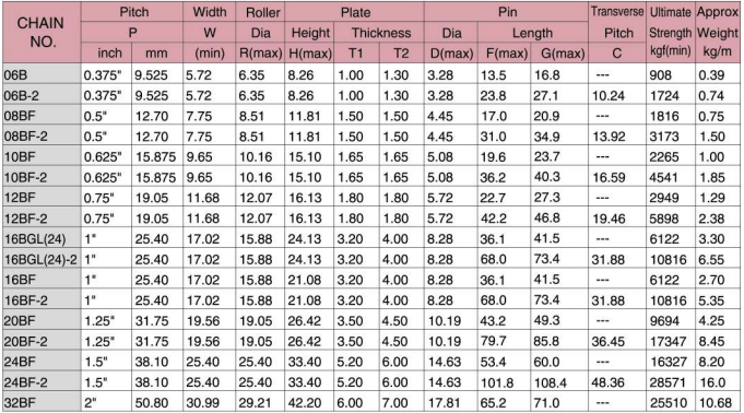 - Có cùng kích thước với những dòng xích ANSi khác ngoại trừ tấm liên kết bên được thiết kế thẳng thay vì liên kết số 8 tiêu chuẩn.