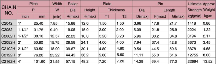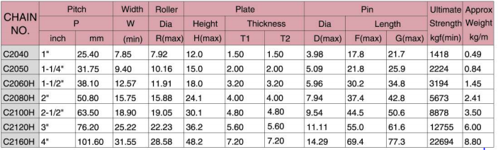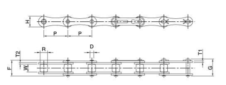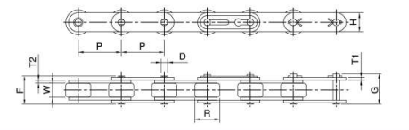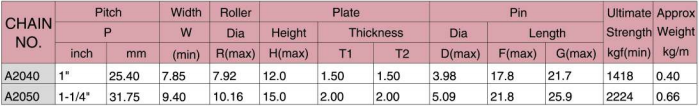 - Cấu tạo bước đôi, các tấm liên kết dài gấp 2 lần so với xích tiêu chuẩn ANSI khác