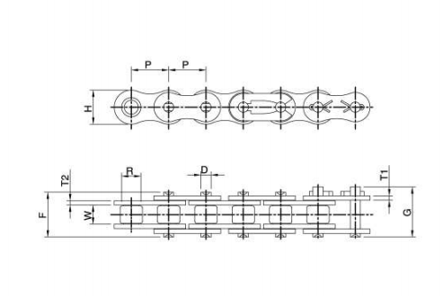 Mặt bích dày, ống lót dài hơn và thiết kế các tấm liên kết kép cho phép xích có diện tích chịu lực lớn hơn để tăng lực đẩy ra và cải thiện độ bền kéo, tải trọng cho phép và tuổi thọ sử dụng.