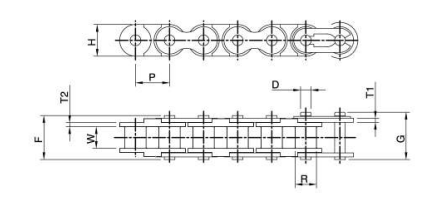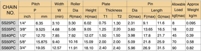 Có thể sử dụng thay thế cho các xích con lăn tiêu chuẩn có cùng thông số kỹ thuật.